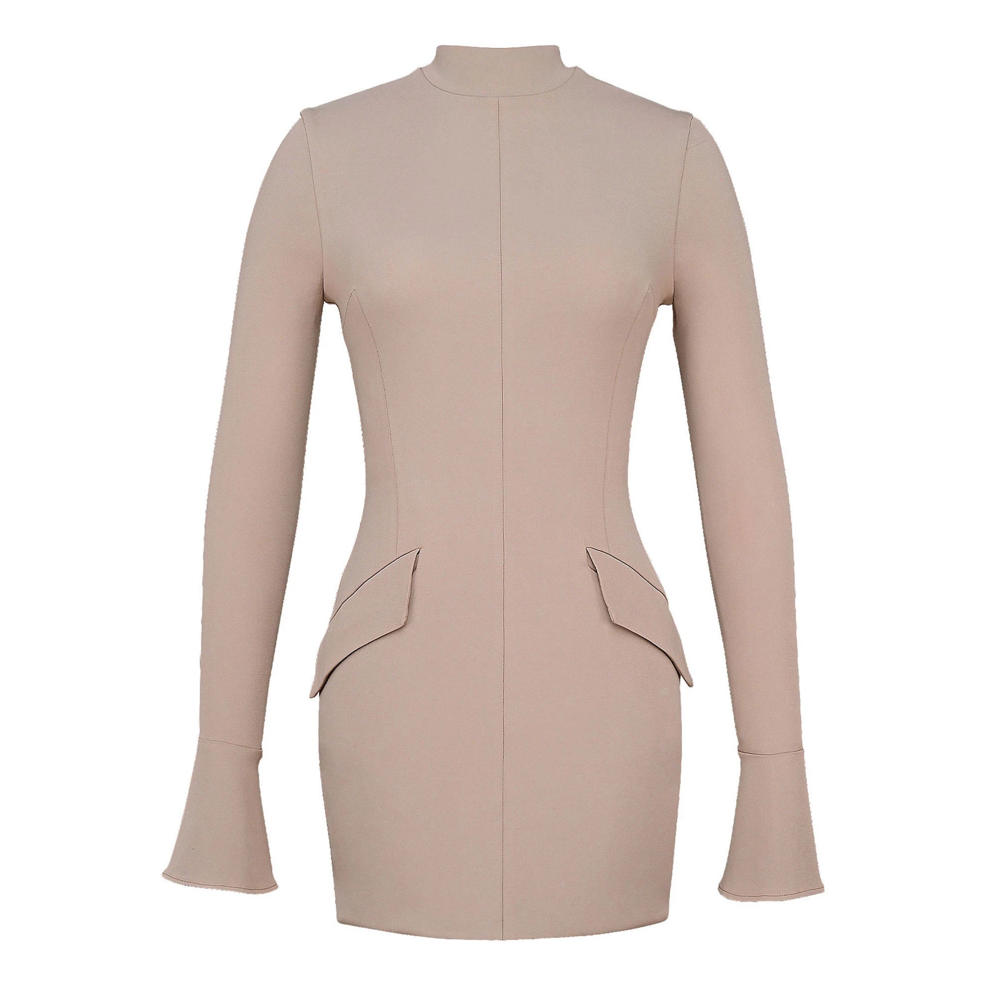 "Wildflower" Long-Sleeved Bodycon Dress – Beige