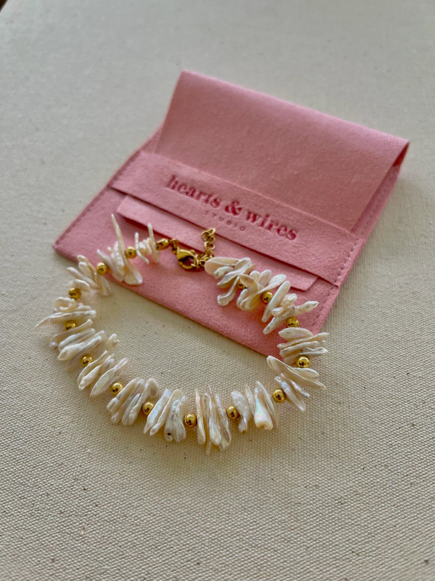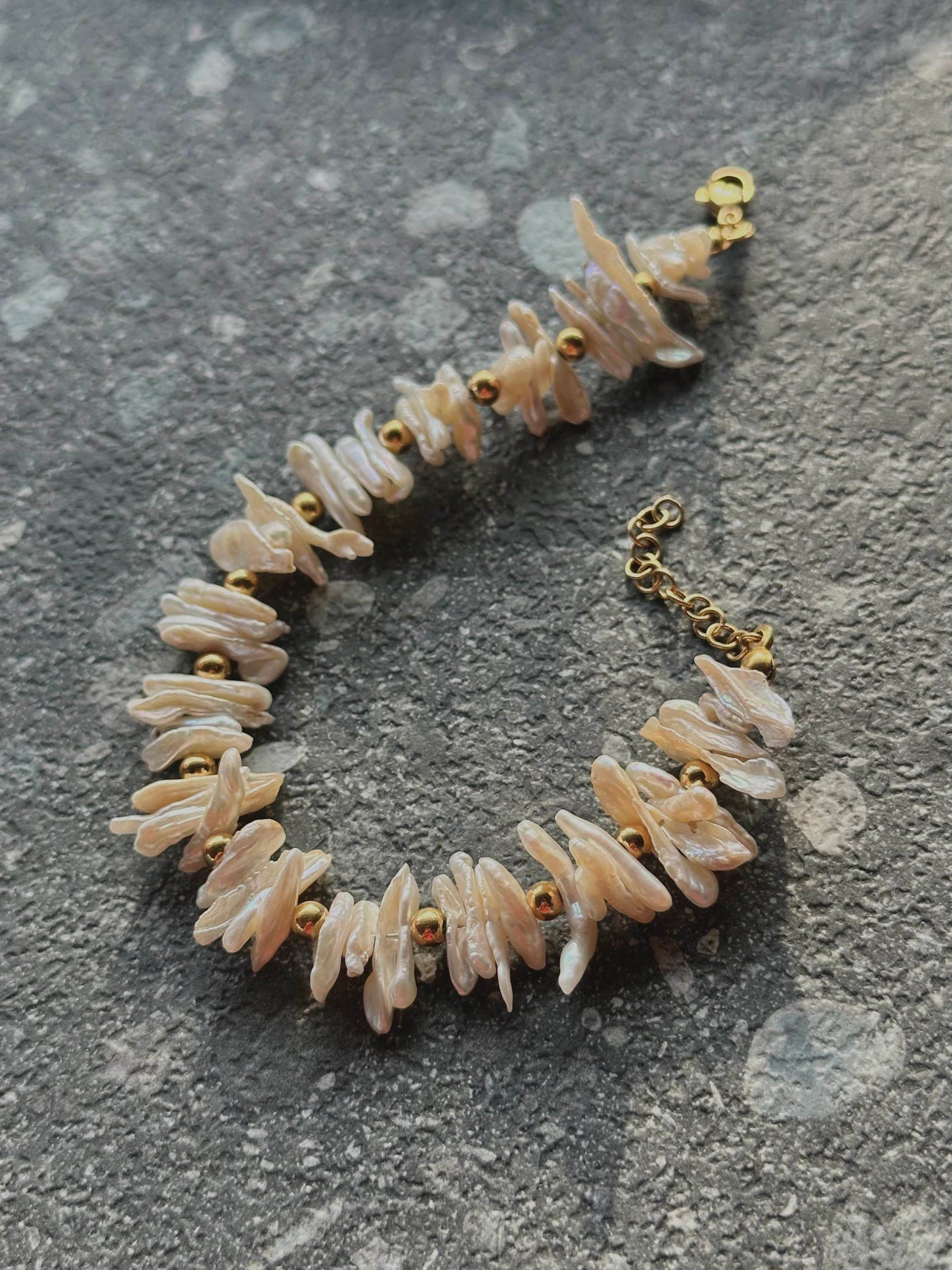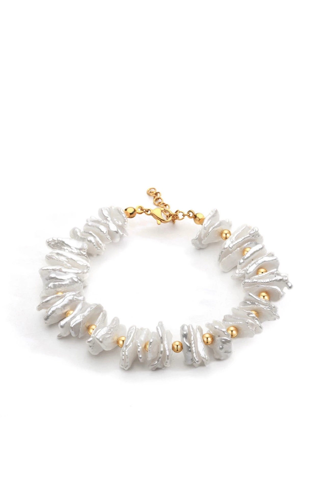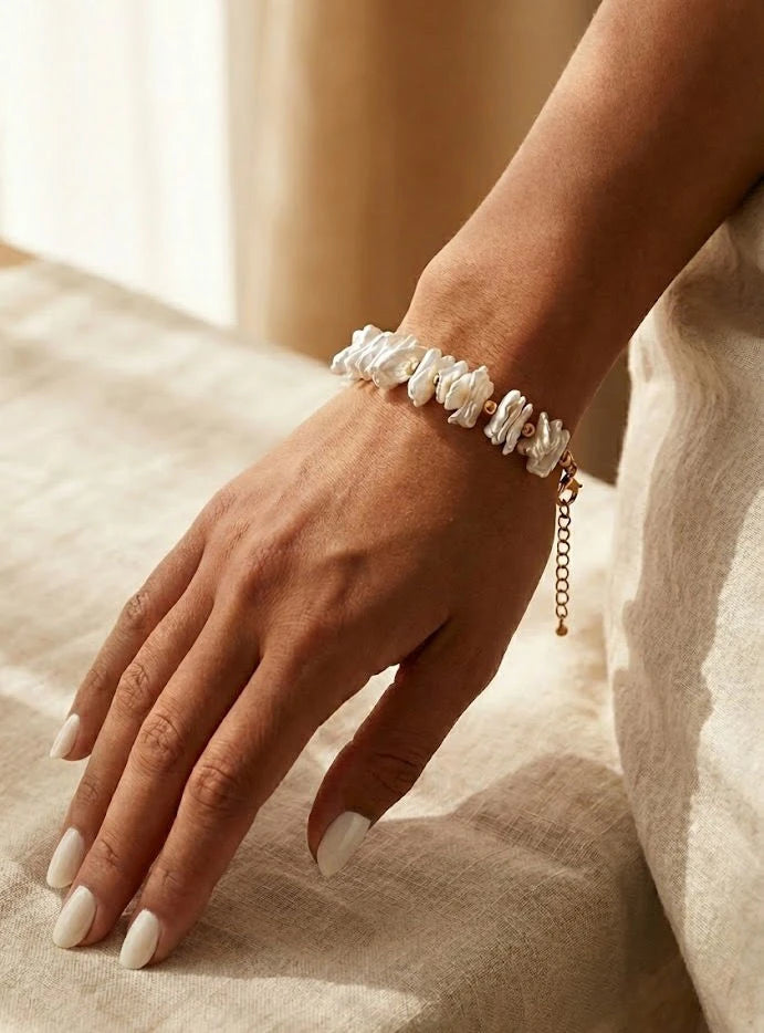 The Cressida Bracelet is a poetic blend of organic beauty and refined craftsmanship. Featuring a string of luminous irregular pearls linked by a dainty gold-toned chain, this piece strikes a perfect balance between romanticism and modern class. Whether paired with your favorite everyday ensemble or styled for a high-profile event, the Cressida’s one-of-a-kind silhouette is guaranteed to turn heads.