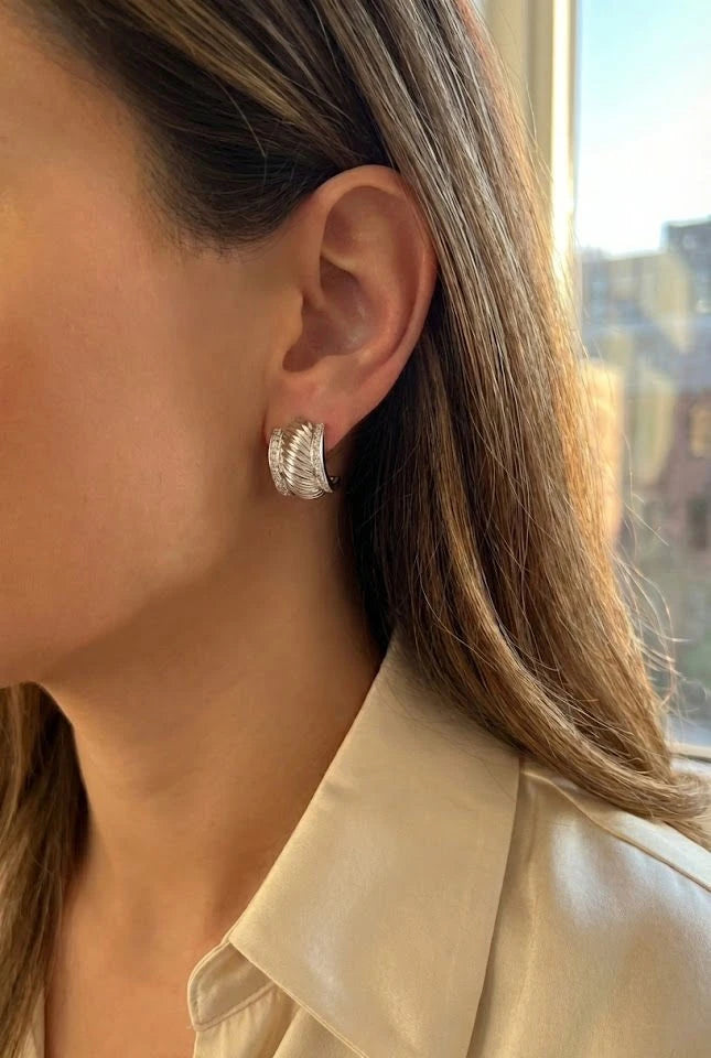 Elevate your aesthetic with the Enyo Earrings—a stunning blend of intricate detailing and high-fashion luxury. These hoops are designed to capture the light with their sparkling accents, offering a sophisticated charm that feels both timeless and modern. Named after the ancient goddess of war, the Enyo earrings are your secret weapon for transforming a simple look into a powerful statement.