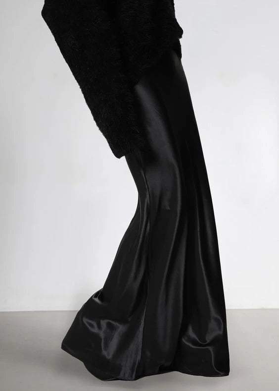 Fill the gaps in your going-out wardrobe with the "Kill Bill" maxi skirt—a unique and glamorous staple designed for the modern woman. Crafted from luxurious, heavy premium satin, the design features a sophisticated mermaid silhouette that drapes beautifully without clinging, offering a perfect balance of structure, fluidity, and a subtle sheen.