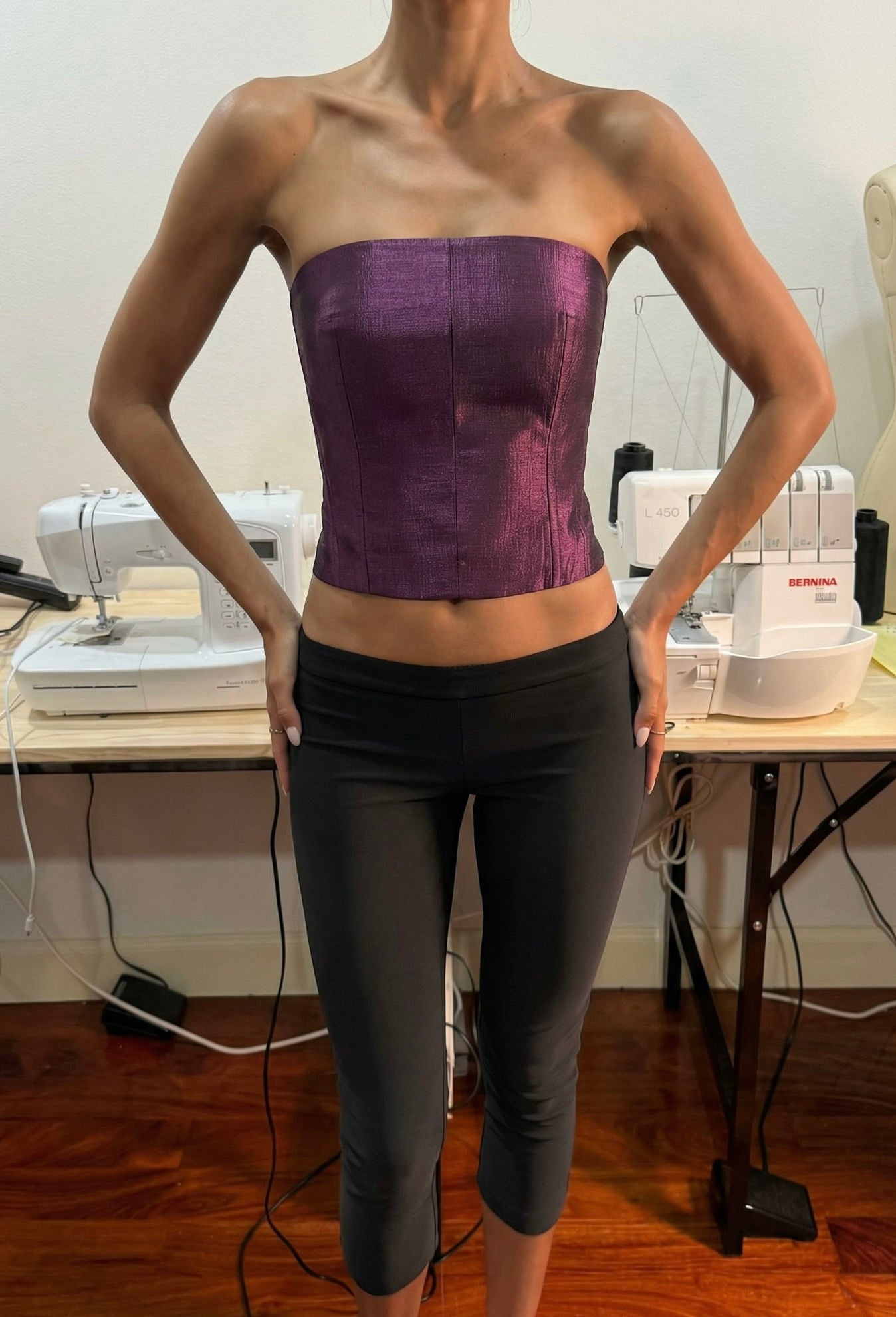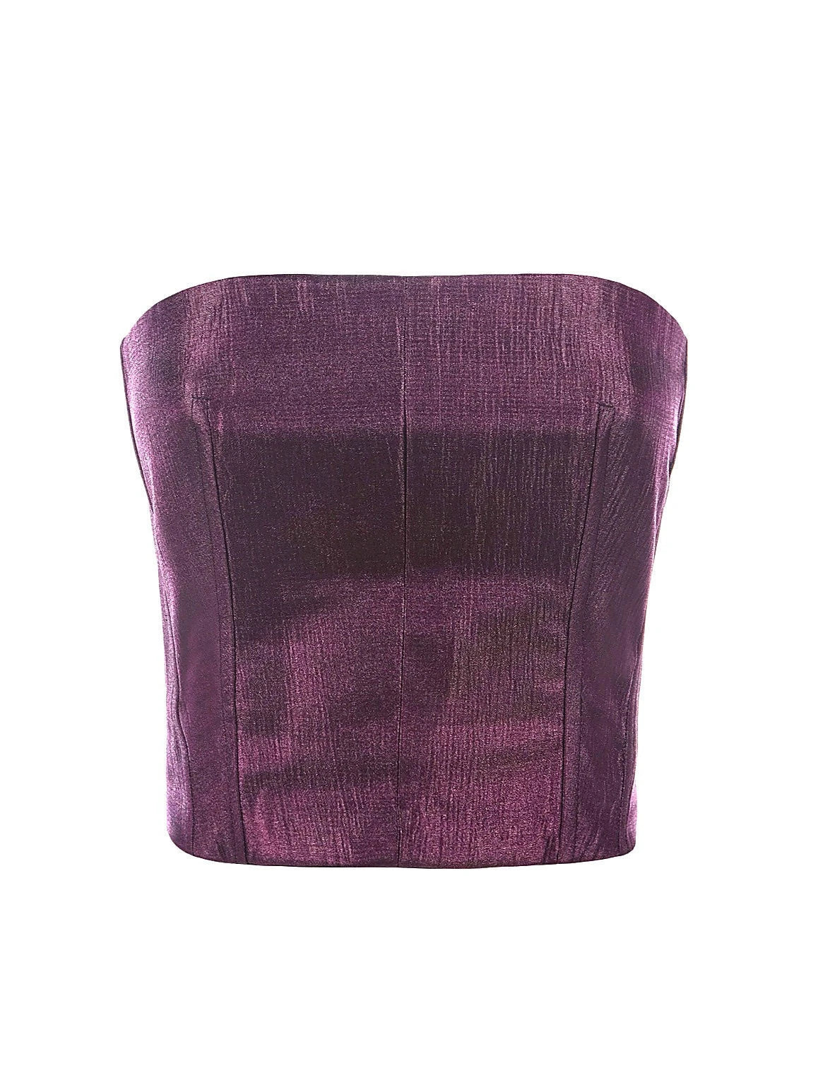 A contemporary classic, the "Born to Die" metallic strapless bustier top is a true statement in sculptural fashion. Engineered for a tight, supportive fit, it features a clean bandeau neckline and a corseted whalebone bust that defines and elevates the silhouette.