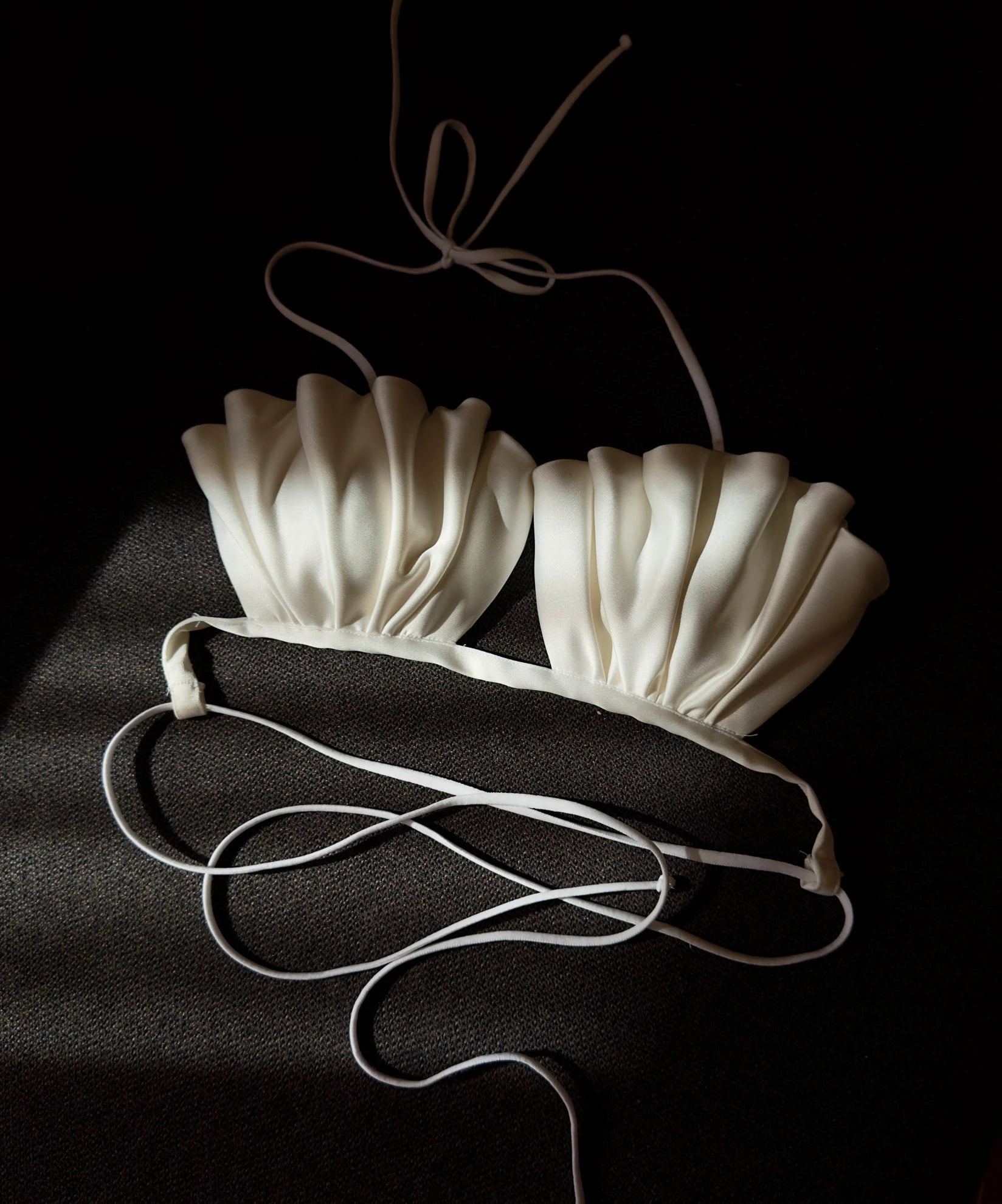 A structural masterpiece inspired by Botticelli’s depiction of Venus rising from the sea. This hand-tacked, thickly pleated bra is a wearable work of art, capturing the essence of the deep sea through intricate texture and form.