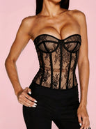 Αποκαλύπτοντας μια τέλεια ισορροπία σαγηνευτικής και κομψότητας, ο κορσές "Miracle Love" διαθέτει διαφανή ένθετα που υπόσχονται μια εντυπωσιακή, εντυπωσιακή εμφάνιση. Κατασκευασμένος από λεπτό πλέγμα εσωρούχων και τονισμένος με αντίθετες μαύρες δομικές γραμμές, αυτό το κομμάτι αποτελεί μια προκλητική δήλωση και μια εκλεπτυσμένη προσθήκη στην γκαρνταρόμπα σας.